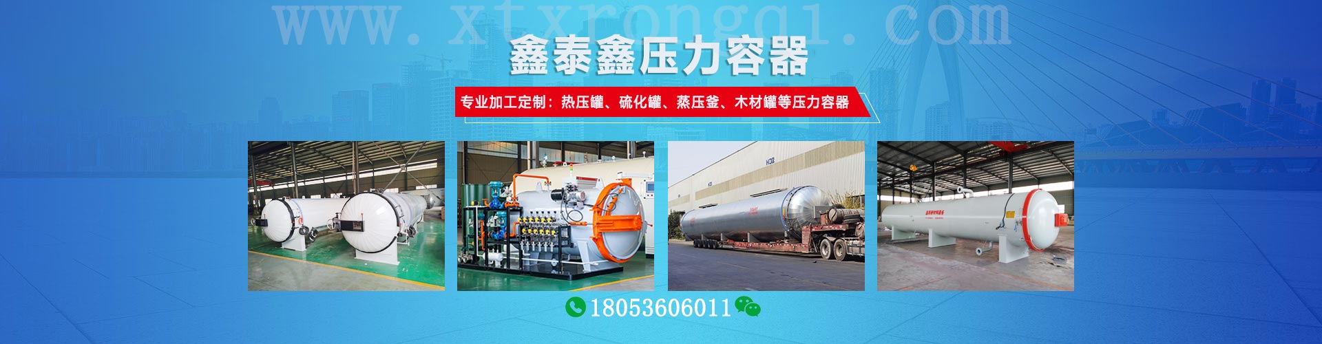 您好,歡迎來到山東鑫泰鑫智能裝備有限公司網(wǎng)站!我們?yōu)槟峁└鞣N規(guī)格的硫化罐、熱壓罐、蒸壓釜、木材罐等壓力容器設(shè)備及服務(wù)。